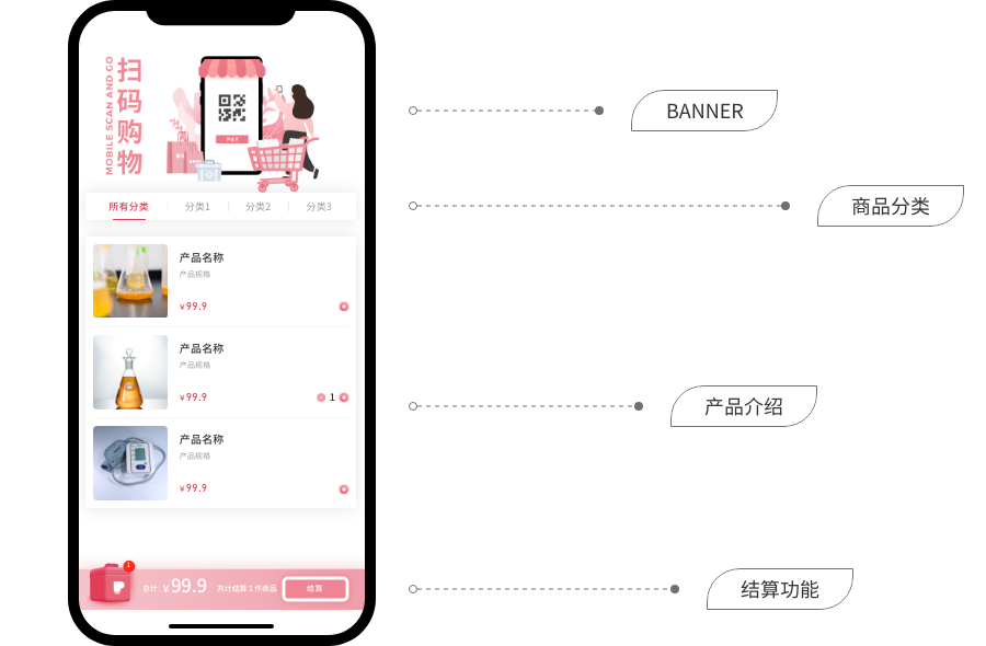 「普健新宁智慧健康零售平台」将通过微信小程序+微信服务号来进行实现。依附于微信平台,用户可以通过小程序注册「普健新宁账户」,「关注服务号」,「支付并购买产品」。不仅如此,用户还能轻松获取所有产品的使用辅导和配套线上售后服务。